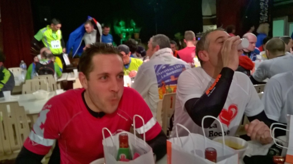 C'est sous un petit crachin et par 10° que le départ est donné du centre ville de la Tranche. La course étant complète, ce sont pas moins de 350 frontales qui prennent la direction de la forêt de La Terrière. Malgré un départ dans le milieu du peloton, Max se retrouve rapidement avec les meilleurs. Après être parti plus prudemment, Laure et Sam décident de faire course commune, Sam se retrouvant sans lumière après seulement 3 bornes (l'allumage de la frontale dans le fond du sac pendant le voyage certainement). Parcours en sous bois très sympa avec des alternances de grands chemins sabloneux et de monotraces sur sable plus dur. Il y a pas mal de vent mais il se fait ressentir que par intermittence lorsque nous sortons de la forêt ou que nous nous rapprochons de la mer. Le parcours est quand même sélectif mais n'empêche pas Max de rester aux avants postes pour finir en 25ème position !!! Derrière, les deux autres lurons déconnent, font des vidéos (attention au saut de biche !!!) et profitent du retour le long de la mer à marée montante. Courir de nuit le long de la mer, c'est assez rare pour ne pas bouder notre plaisir !!