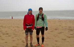 C'est près d'une heure après que Max et Sam pointent le bout de leur nez au bout de la plage. Après avoir emmené Sam sur toute la course, Max lui demande un dernier effort en allant chercher les quatres coureurs 50m devant (on ne peut vraiment pas finir tranquille !!!). Heureusement, le vent est de dos et la tâche plus facile. Nous coupons la ligne d'arrivée ensemble en 02:42:18, l'un plus fatigué que l'autre !!!