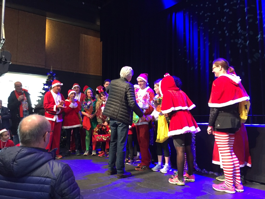 Une fois n'est pas coutume, nous avons fait la course tous ensemble autour de notre magnifique traineau et c'est tous ensemble que nous franchissons la ligne d'arrivée en un temps de .. L'important n'était pas là mais bien sur la bonne humeur. La aussi, une fois n'est pas coutume, nous avons pu compter sur les filles pour mettre le feu sur la ligne d'arrivée en nous gratifiant d'une magnifique chorégraphie.